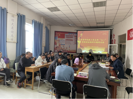 专题学习会结束后,接着召开了教工党支部“七一”重要讲话精神专题研讨会,全体教师党员参加。会上,石建锋、曹生、王建民、袁兴亮四位同志分享了“七一”重要讲话精神学习心得和思想体会,纷纷表示要积极响应习近平总书记的号召,继续深入学习贯彻落实习近平总书记“七一”重要讲话精神,坚定理想信念,注重以学修身,勇于担当作为,切实做好教书育人工作,以实际行动争做一名新时代优秀共产党员。