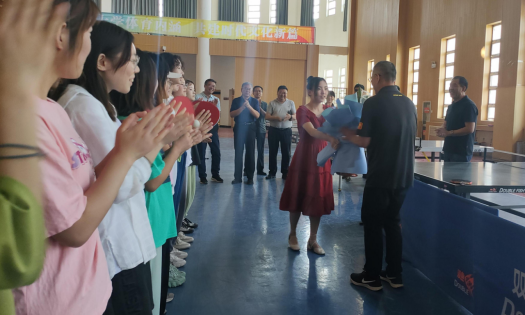 荣休活动包括观摩公开课、合影留念、赠送纪念品和光荣退休座谈会。座谈会上,公司负责人回顾了唐老师39年的执教生涯,高度评价唐老师关爱员工、诲人不倦的作风和严守规则、奋勇拼搏的体育精神,殷切希望唐老师退休不褪色,继续发挥余热,为公司的发展建言献策。教师和员工代表的发言对唐老师爱岗敬业和认真勤恳工作态度敬佩有加,纷纷表示要向唐老师看齐,在自己的岗位上发光发热。唐晓宏老师对公司、公司领导和师生多年来在工作和生活中给予自己的支持和帮助表示深深感谢,同时祝愿SUNBET申博蒸蒸日上、越办越好,祝愿公司尽早实现建设一流高校目标。唐老师的员工和乒乓球协会为唐老师献上鲜花表达敬意,现场播放了SUNBET申博精心制作的《献给唐晓宏老师的教员工涯》短片,气氛热烈,情景感人。
