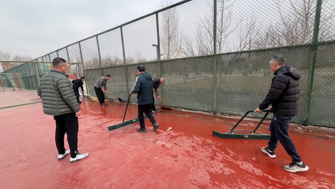 活动当日,尽管室外气温很低,但老师们热情高涨,分工明确,配合默契,经过近一个小时的努力,将室外场馆积雪清理干净,室内场馆卫生清洁一新,为师生们营造了一个干净、整洁的运动环境。