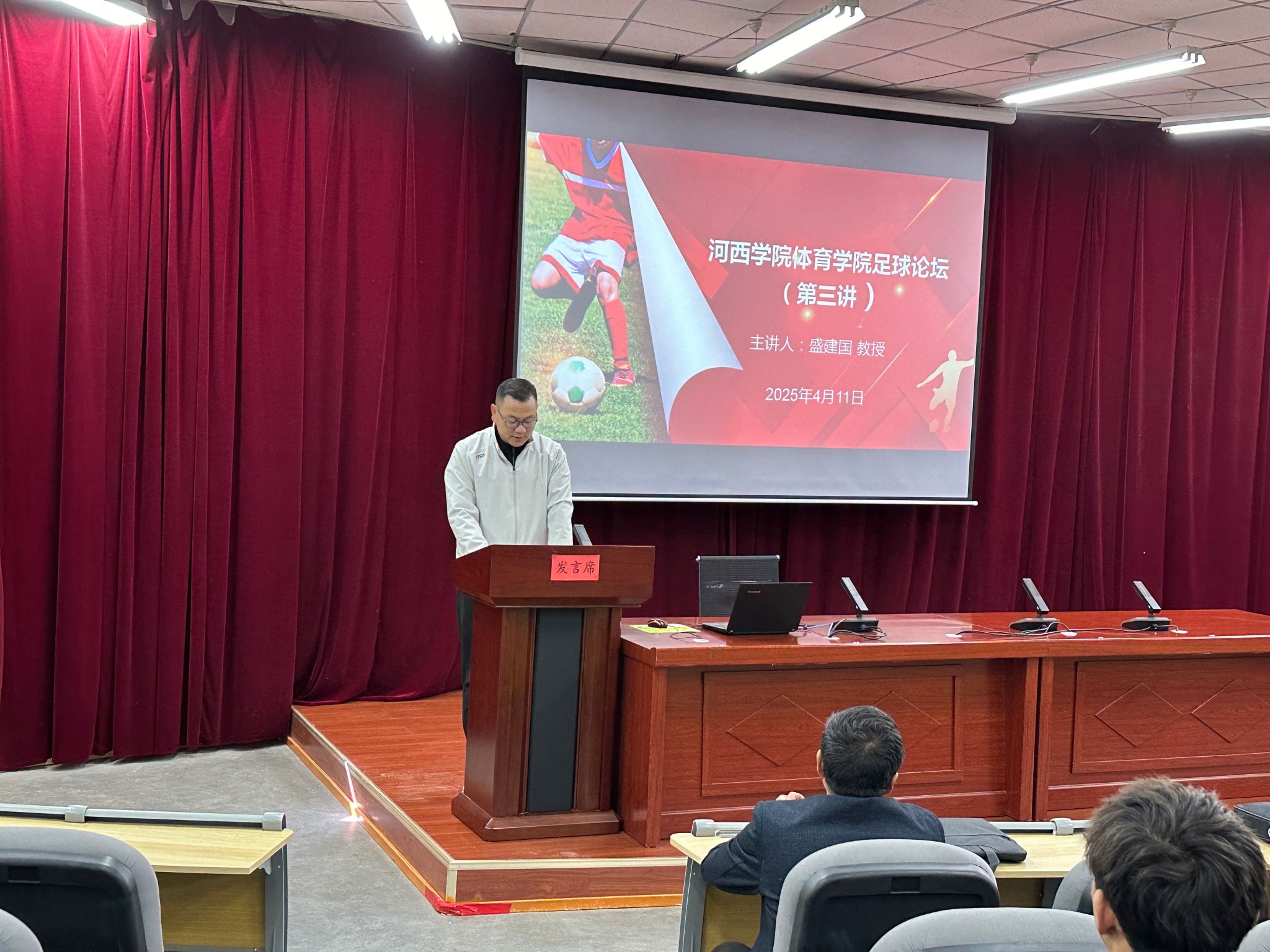 为深入贯彻落实国家校园足球发展战略,扎实推进学科专业建设,2025年4月11日,公司举办“足球论坛”第三讲,由盛建国教授主讲。