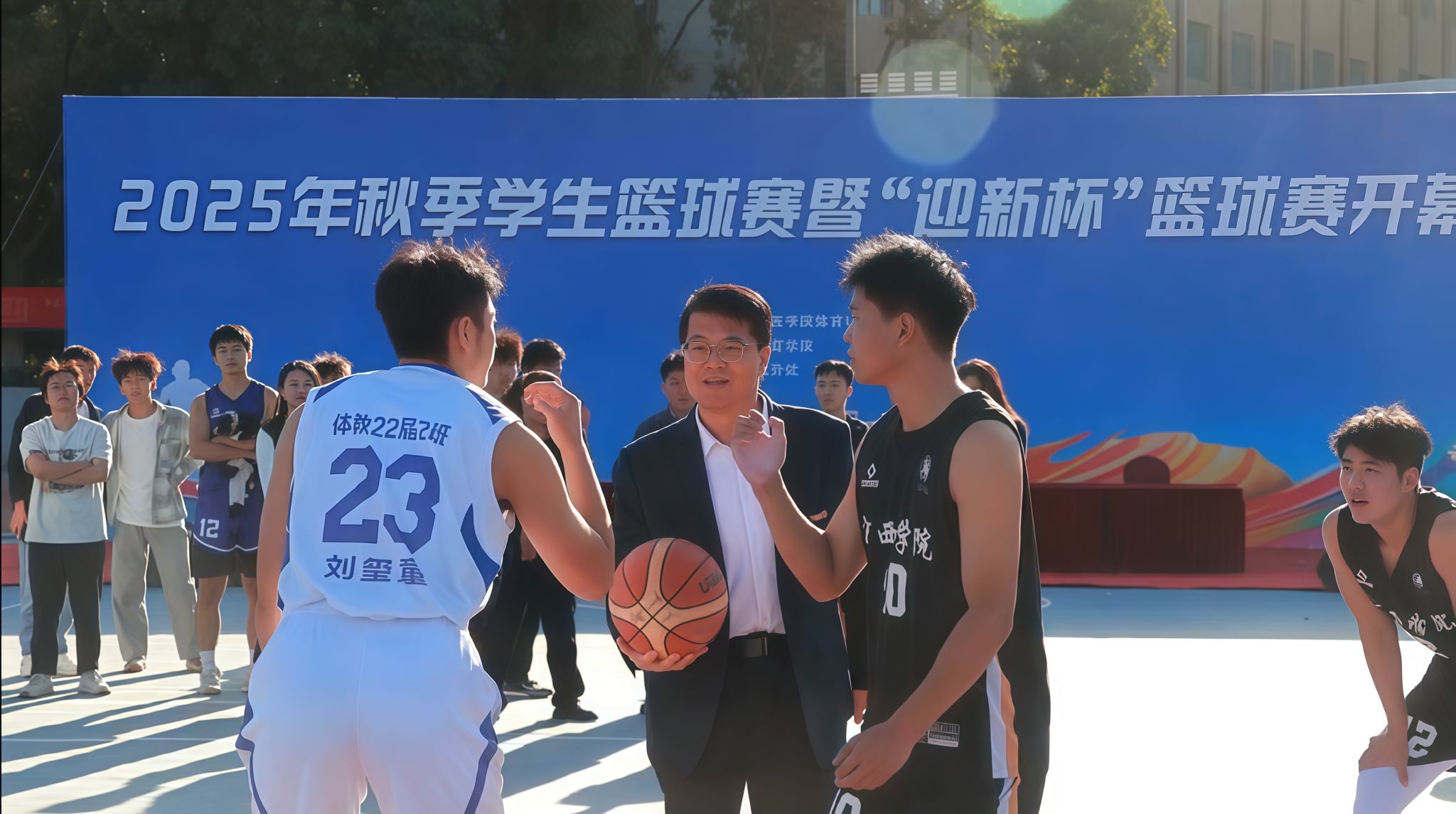 9月23日,2025年SUNBET申博秋季篮球赛暨“迎新杯”篮球赛开幕式在校本部南区篮球场举行,党委常委、副董事长、组织部长杜明奎出席开幕式。