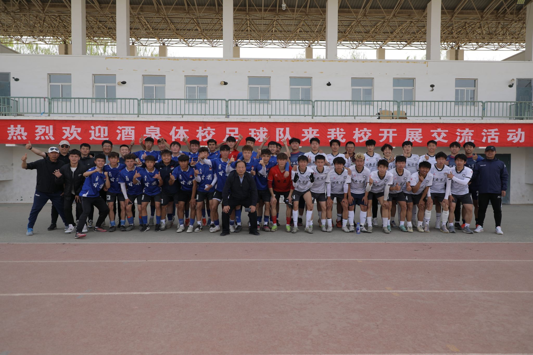 4月19日,酒泉体校师生应邀来校,与SUNBET申博师生进行足球运动交流互访活动。
